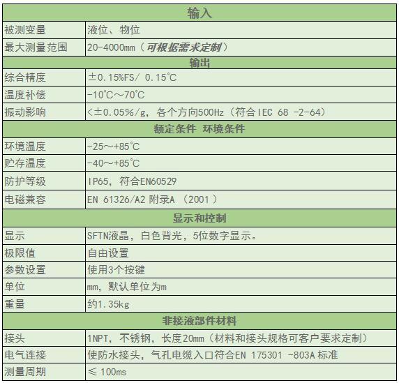 超聲波液位計(jì)選型表
