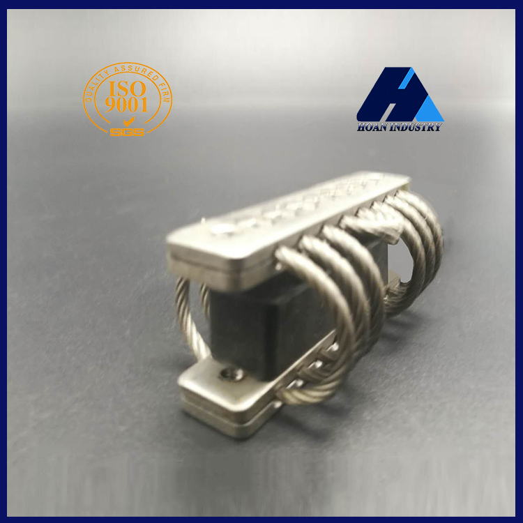 鋼絲繩隔振器是由鋼絲繩繞成螺旋狀并固定在沿螺母布置的兩塊金屬板之間制作而成的,它是一種具有非線性特性和干摩擦阻尼的新型隔振器,采用多股鋼絲按一定方向纏繞而成的鋼絲繩作為彈性元件。