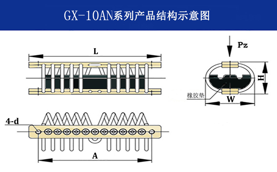 GX-10AN系列鋼絲繩隔振器Pz向公稱載荷為10N(1.02kg),根據(jù)其尺寸不同分為GX-10AN?型和GX-10AN2型兩種,GX-10AN系列鋼絲繩隔振器是對(duì)GX型鋼絲繩隔振器的進(jìn)一步改進(jìn),將長(zhǎng)方體的橡膠墊改為與鋼絲繩緊密相貼的拱形橡膠墊,不僅對(duì)Pz方向進(jìn)行隔振緩沖,而且也保證了其它方向的隔振緩沖效果,可滿足高達(dá)100G以上的抗沖擊要求,適用于裝甲車輛、自行火炮、機(jī)載、車載、艦載等電子、機(jī)械設(shè)備、計(jì)算機(jī)與儀器儀表在高低溫、化學(xué)污染等惡劣環(huán)境下的隔振緩沖,導(dǎo)彈衛(wèi)星的運(yùn)載、導(dǎo)航與發(fā)射系統(tǒng)的安全防護(hù)以及各類工業(yè)動(dòng)力機(jī)械的工業(yè)降噪隔振等方面。